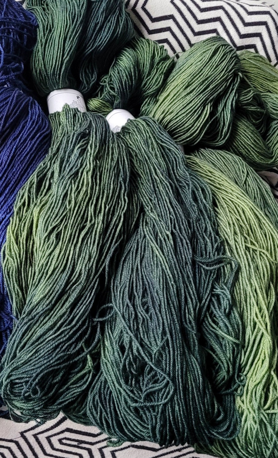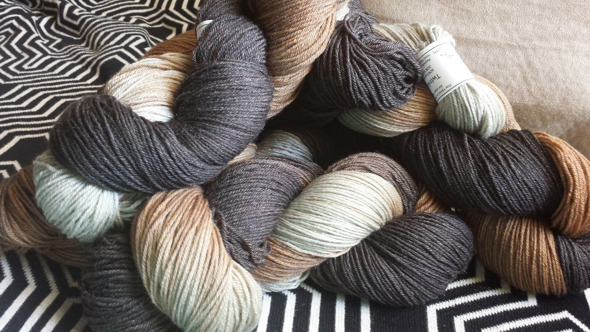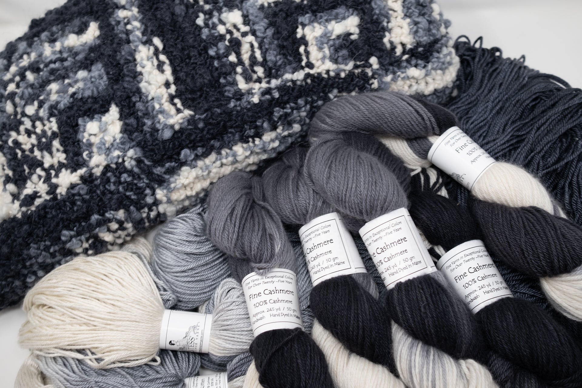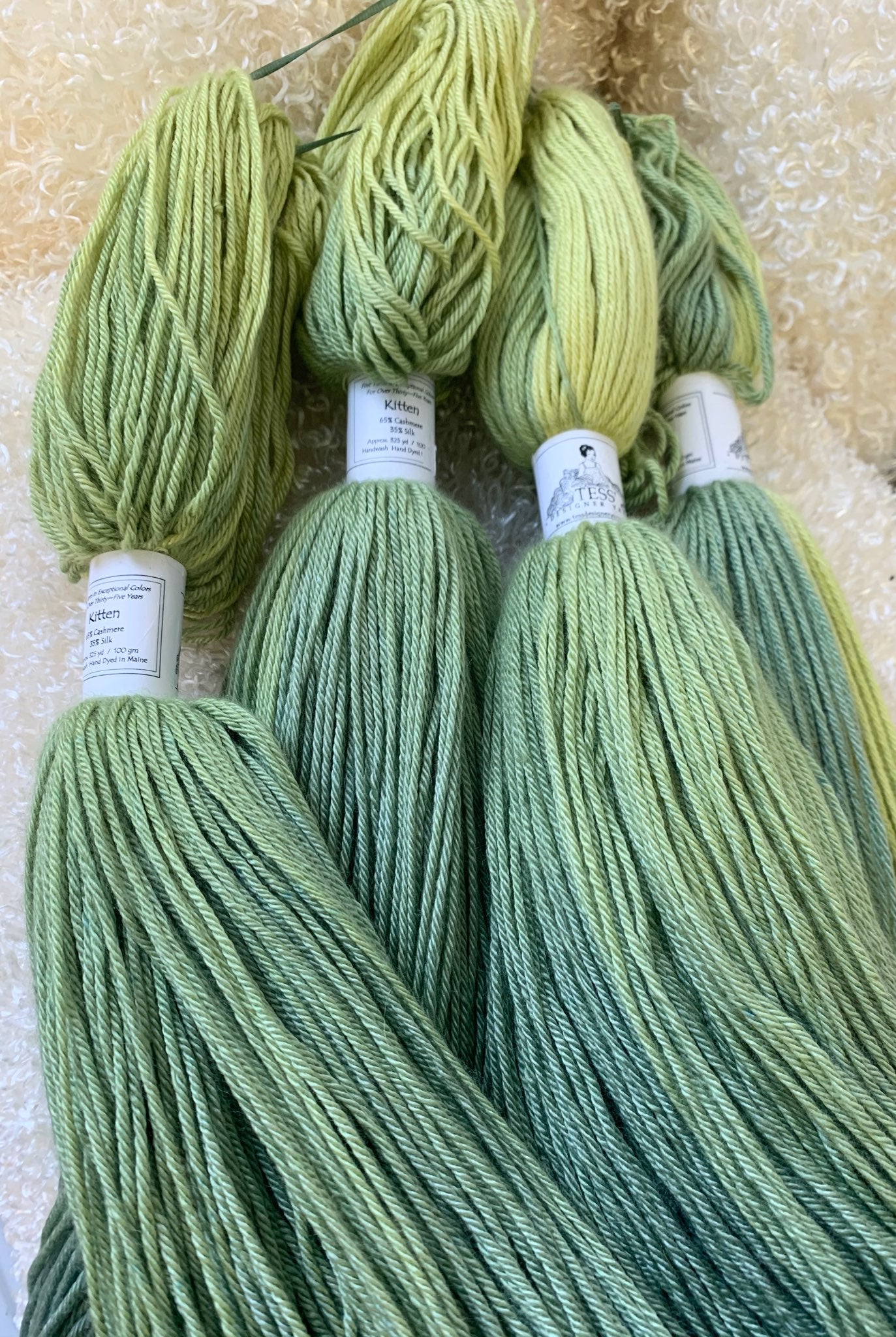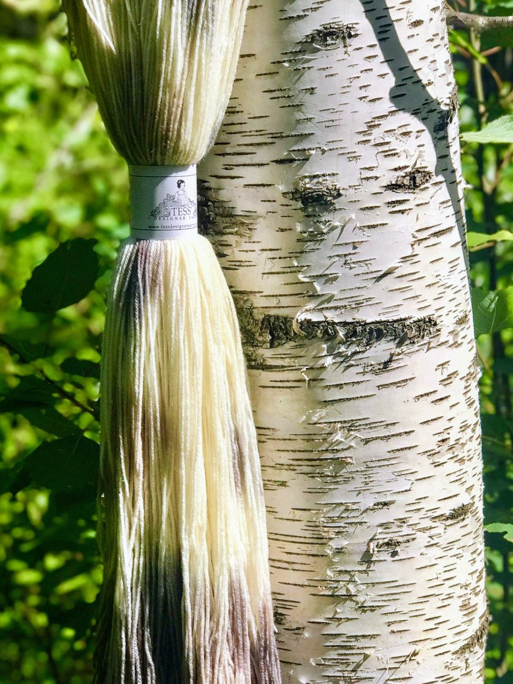 Cream with taupe, grey, & beige. Just like a Maine birch tree